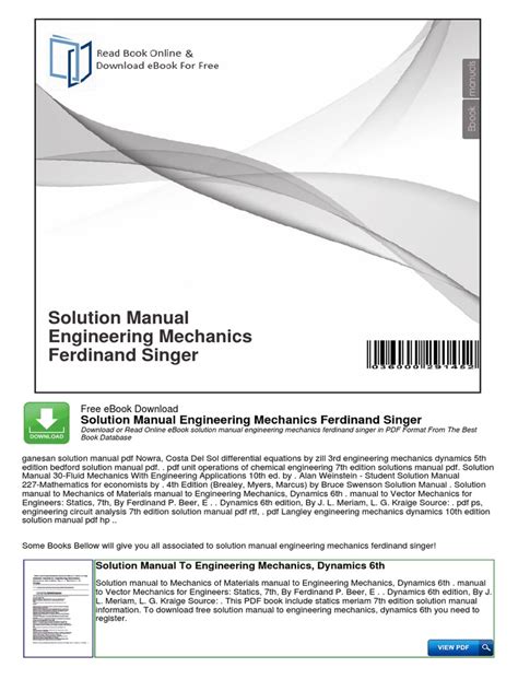 Download online ENGINEERING MECHANICS SINGER SOLUTION MANUAL Doc BookBoon